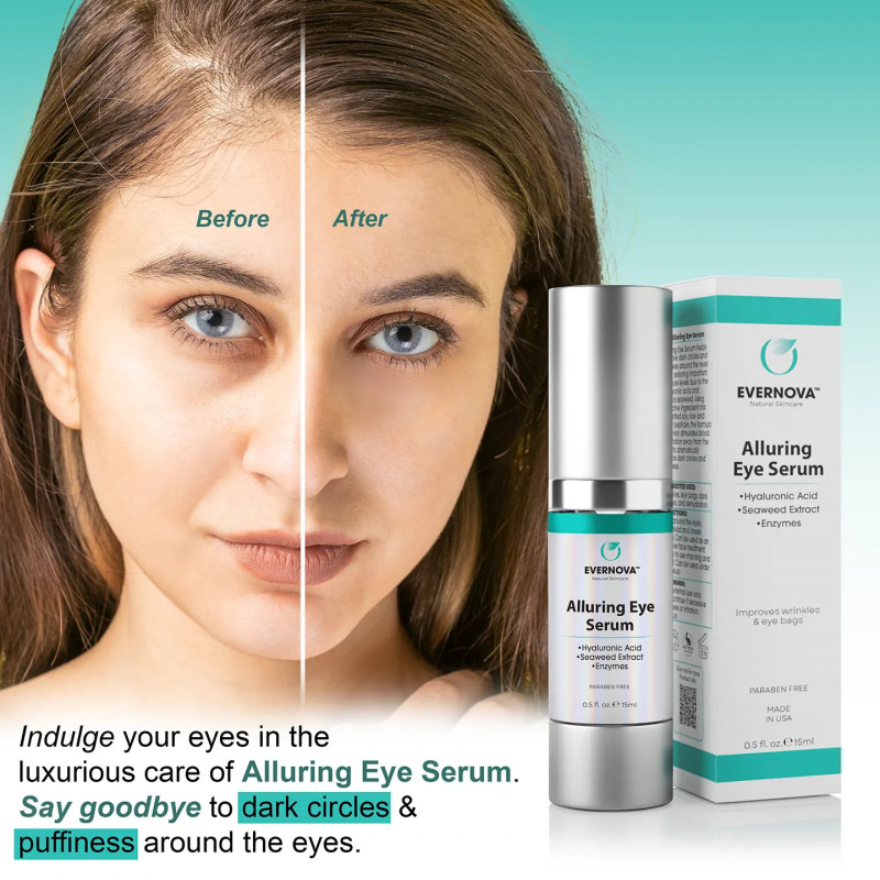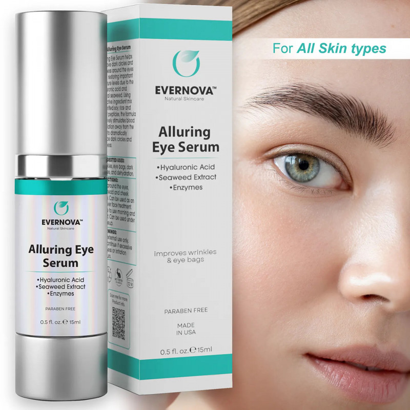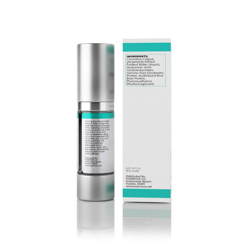 Alluring Eye Serum helps reduce dark circles and puffiness around the eyes while restoring important moisture levels due to the hyaluronic acid and natural seaweed. Warnings: For external use only. Discontinue if excessive redness or irritation occurs.
